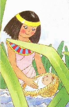 Alors, il ordonna que les Israélites deviennent des esclaves et ses soldats les traitèrent durement. Malgré tout, le peuple d'Israël était de plus en plus nombreux. Pharaon donna donc cet ordre cruel: "Que tous les garçons nouveau-nés soient jetés au fleuve!" C'est pourquoi, quand Moïse vint au monde, sa mère le cacha dans une corbeille étanche et le déposa sur les bords du fleuve... Or la fille de Pharaon vint s'y baigner. Elle découvrit le bébé dans son berceau flottant, parmi les joncs. Elle le prit dans son palais et l'éleva comme son fils. |